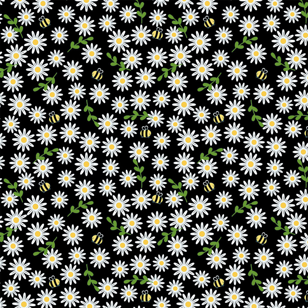 Tecido Tricoline Girassol e Abelhinha Fundo Preto 50cm X 1.50Largura